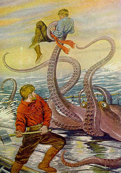"Why, I to whom you speak," Conseil said with the world's straightest face, "I recall perfectly seeing a large boat dragged under the waves by the arms of a cephalopod."